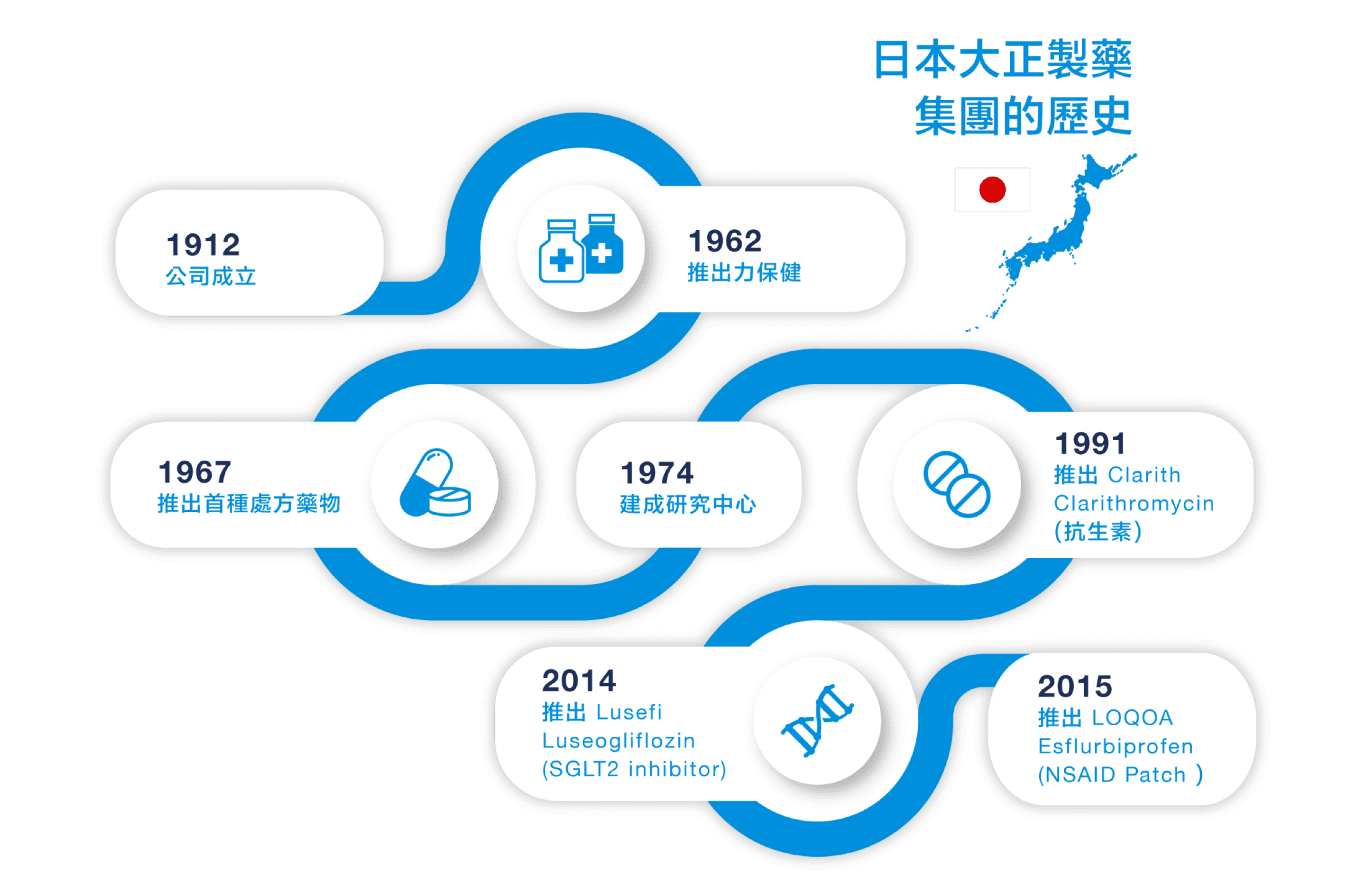 日本大正製藥成立超過100年(1921),一直以安全、保障和信任為公司價值。